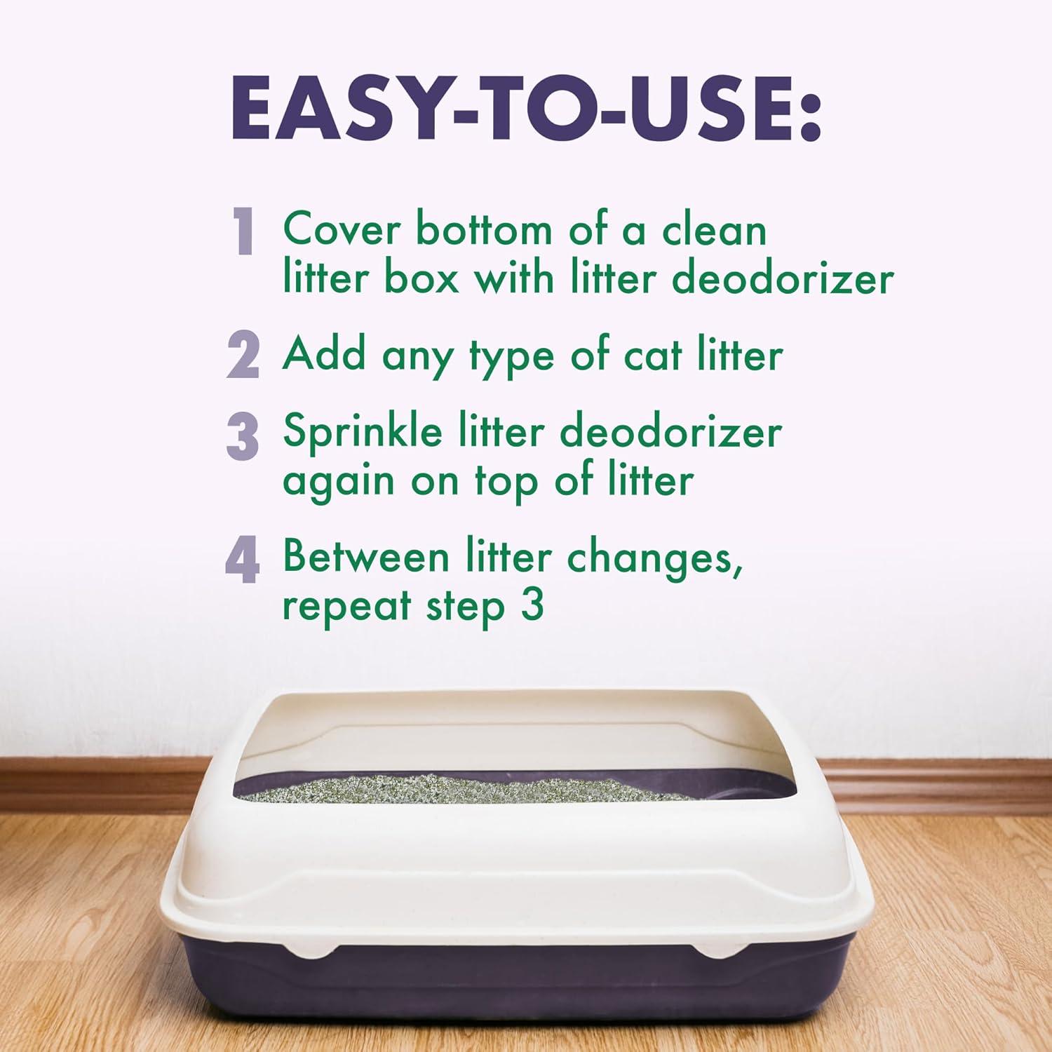 CAT LITTER DEODORIZER: Eliminates litter box odors and helps litter stay fresh longer