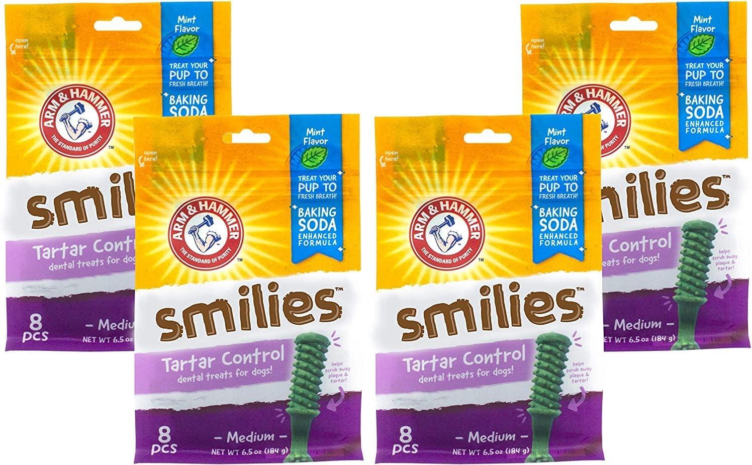 BAKING SODA ENHANCED DENTAL CHEWS FOR DOGS – These dog oral health treats are infused with Arm & Hammer Baking Soda to help clean teeth and freshen breath.