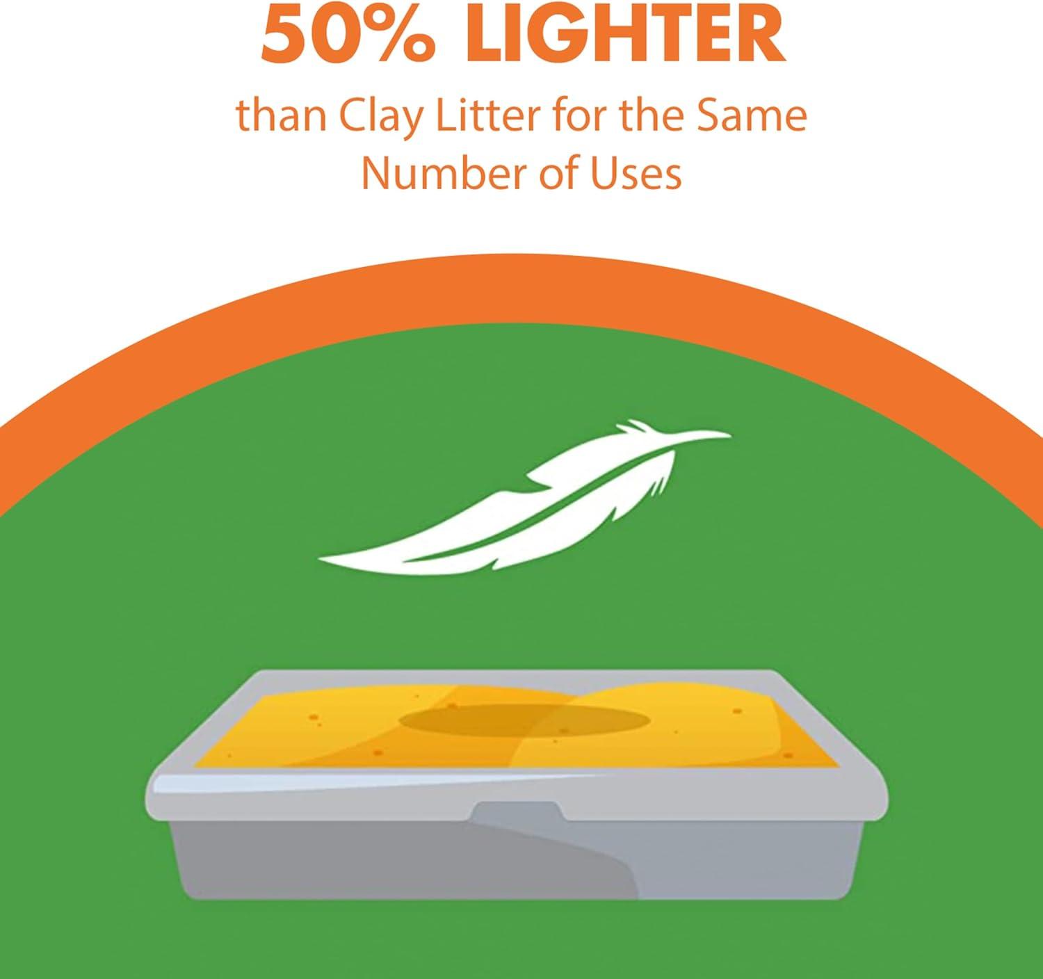 LOW DUST FORMULA, 50% LIGHTER than traditional clay cat litter, with ARM & HAMMER cat litter that is easy to carry, easy to pour. Natural cat litter with corn fibers, plant extracts, Baking Soda, and mineral oil for dust control
