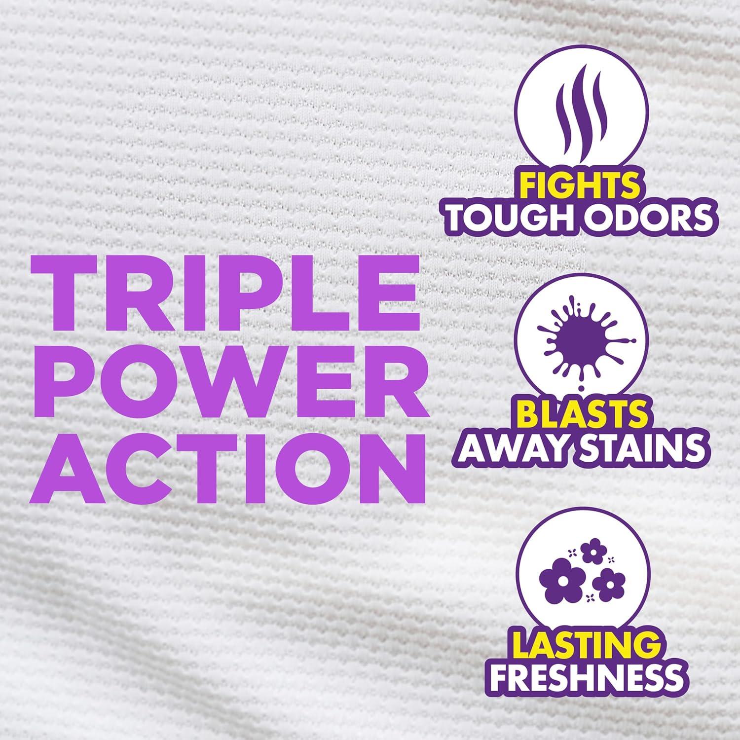 Triple-power HE laundry detergent fights tough odors, blasts away stains and boosts freshness so your clothes look and smell their best